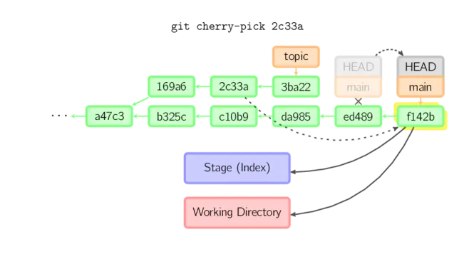 cherry-pick命令"复制"一个提交节点并在当前分支做一次完全一样的新提交。