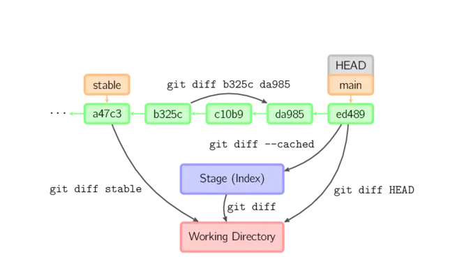 ## 查看已暂存的+未暂存的所有改动,与版本HEAD进行比较