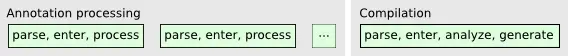 javac -processor package1.Processor1,package2.Processor2 SourceFile.java